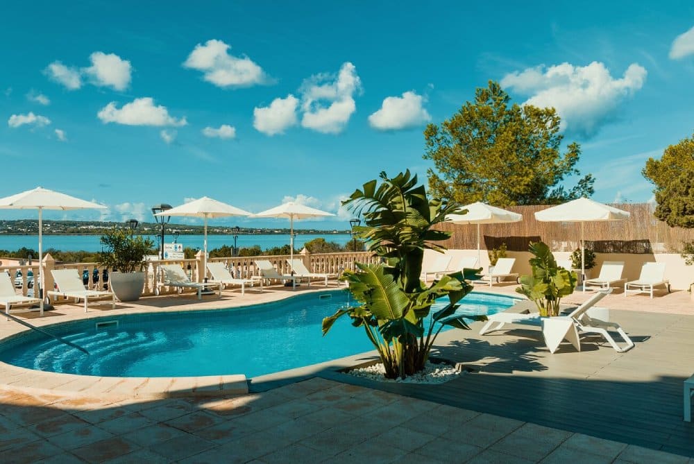 Tienen piscina al aire libre y terraza con vistas al parque natural de Ses Salines.